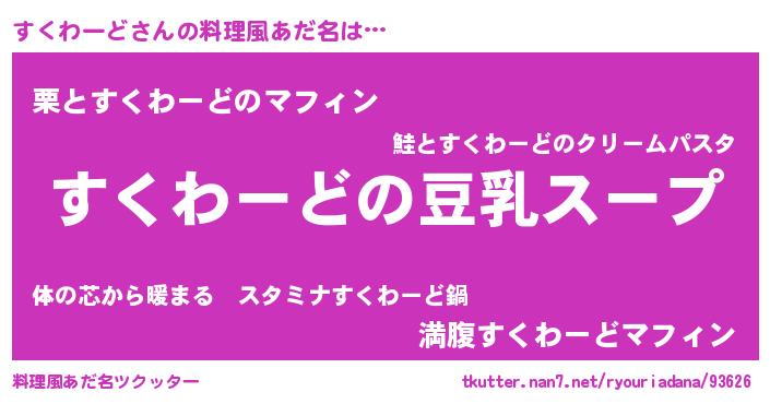 | 胡散臭い通販商品みたいなあだ名 | 『信頼と実績のサプリメント…その名も「すくわーど」』 |