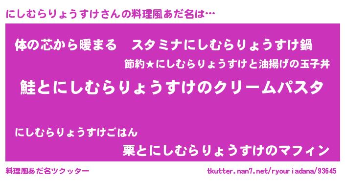 | 男性向けラノベタイトル風あだ名 | 『ノーゲーム・ノーニシムラリョウスケ』 |