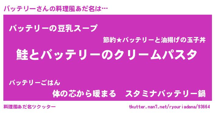 | 男性向けラノベタイトル風あだ名 | 『ノーゲーム・ノーバッテリー』 |