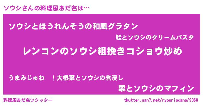 | 意味不明あだ名 | 『自称ソウシ』『ニラ科ソウシ属』 |