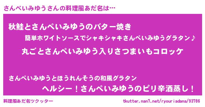 | ヘコむあだ名 | 『さんぺいみゆう(苦笑)』『さん太郎』 |