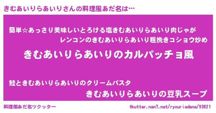 | 男性向けラノベタイトル風あだ名 | 『魔弾の王ときむあいりらあいり』 |