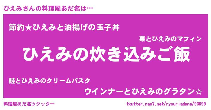 | 男性向けラノベタイトル風あだ名 | 『うちのひえみが世界を掌握している!』 |