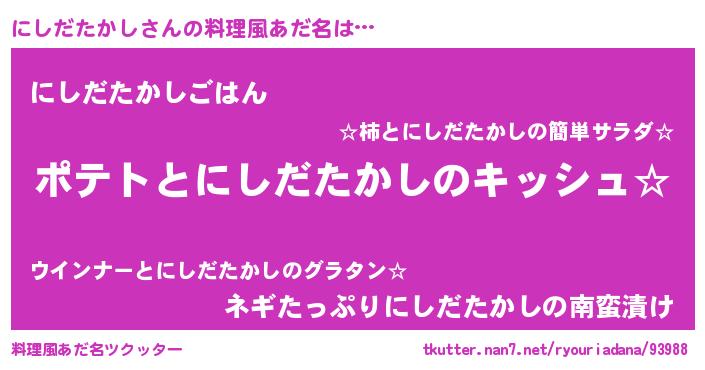 | ポケモン風あだ名 | 『ヒニシダタカシ』『ニシキング』 |