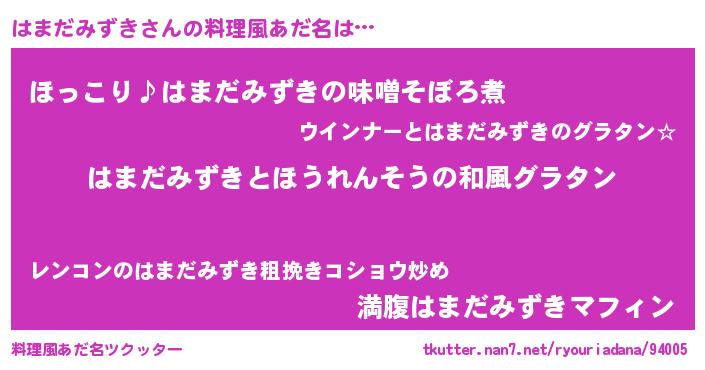 | 女子向けラノベタイトル風あだ名 | 『はまだみずきの玉の輿計画!』 |