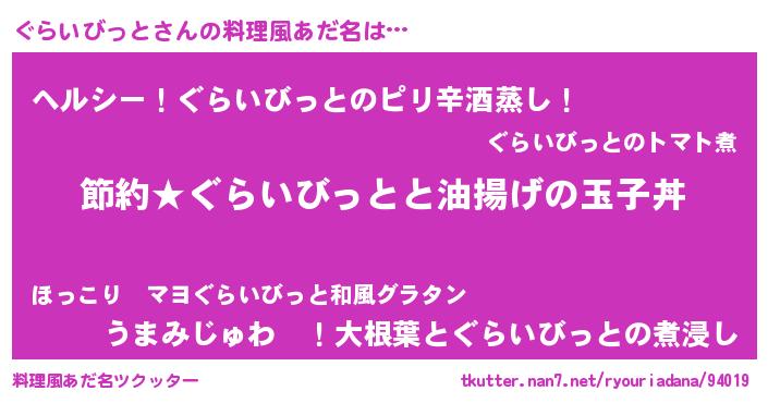 | 男性向けラノベタイトル風あだ名 | 『ぐらいびっとの憂鬱』 |