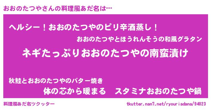 | 男性向けラノベタイトル風あだ名 | 『オオノタツヤアートオンライン』 |