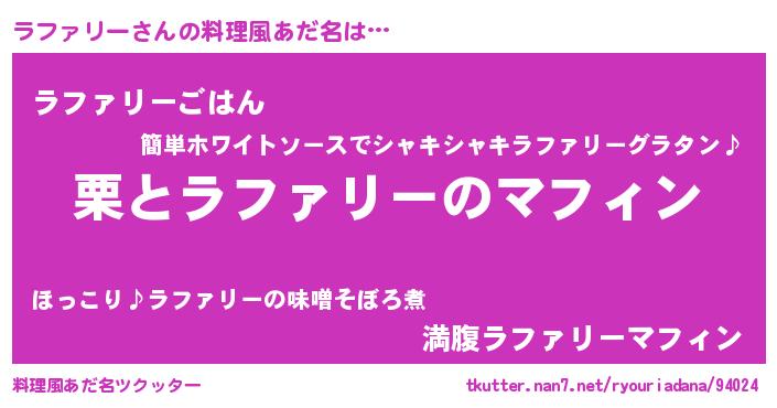 | 男性向けラノベタイトル風あだ名 | 『はたらくラファリーさま!』 |
