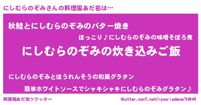 | 意味不明あだ名 | 『永久保存にしむらのぞみ』 |