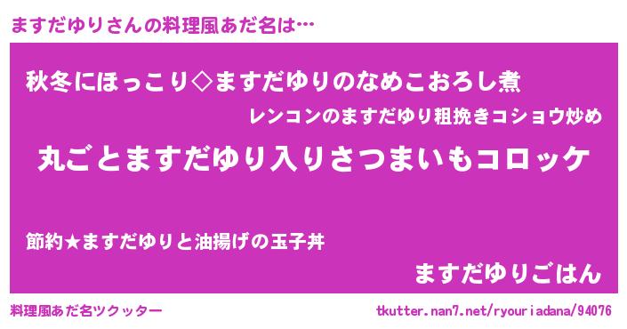 | 女子向けラノベタイトル風あだ名 | 『乙女ゲームの破滅フラグしかない悪役ますだゆりに転生してしまった…』 |