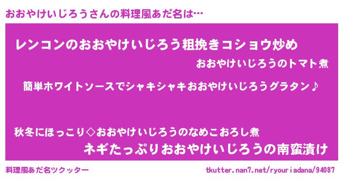 | 男性向けラノベタイトル風あだ名 | 『おおやけいじろうの嫁は女の子じゃないと思った?』 |