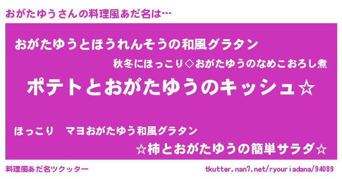 | 男性向けラノベタイトル風あだ名 | 『おがたゆうの嫁は女の子じゃないと思った?』 |