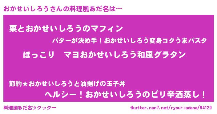 | 女子向けラノベタイトル風あだ名 | 『悪役おかせいしろうに転生したようですが、知った事ではありません』 |