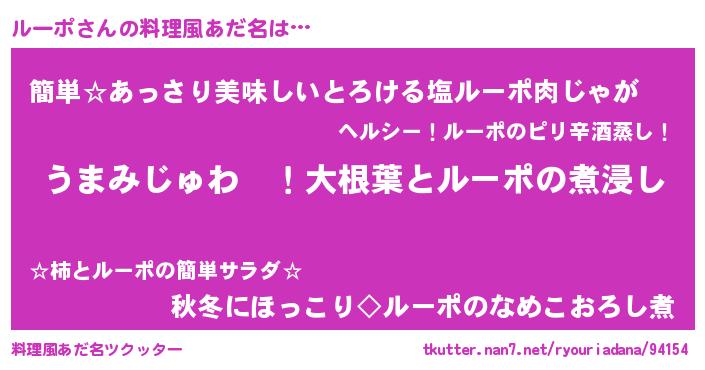 | ポケモン風あだ名 | 『ルーポダネ』『ゼニルー』 |
