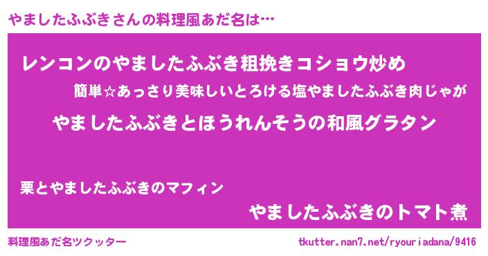 | 胡散臭い通販商品みたいなあだ名 | 『芸能人もオススメするアガリクス…その名も「やましたふぶき」』 |