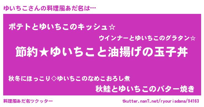 | 欧米人風あだ名 | 『マイケルゆいちこ』『ウサインゆいちこ』 |