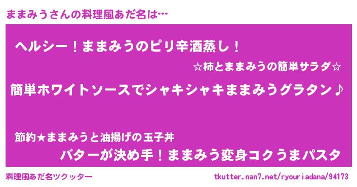 | 胡散臭い通販商品みたいなあだ名 | 『全米が絶賛したサプリメント…その名も「ままみう」』 |