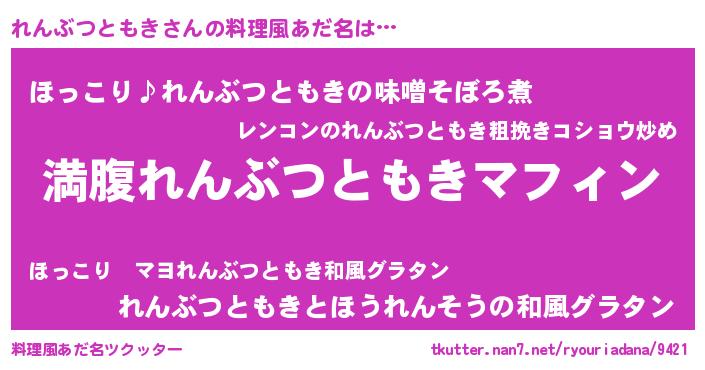 | ヘコむあだ名 | 『れんぶつともき(爆)』『れんにー』 |
