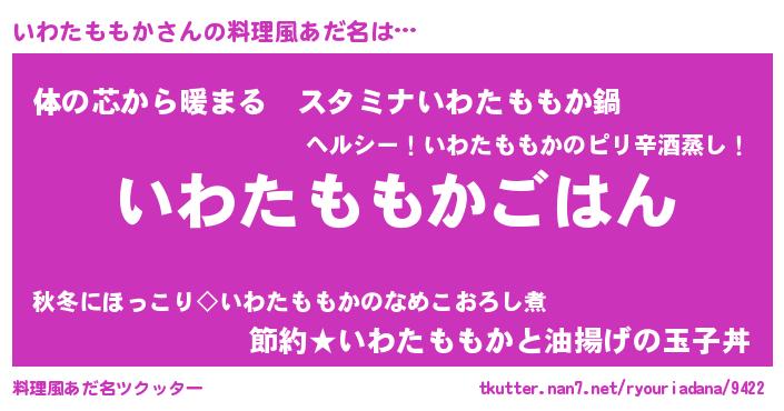 | 男性向けラノベタイトル風あだ名 | 『イワタモモカスレイヤー』 |