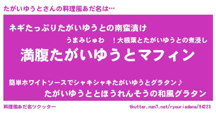 | ヘコむあだ名 | 『たがいゆうと(苦笑)』『たがにー』 |