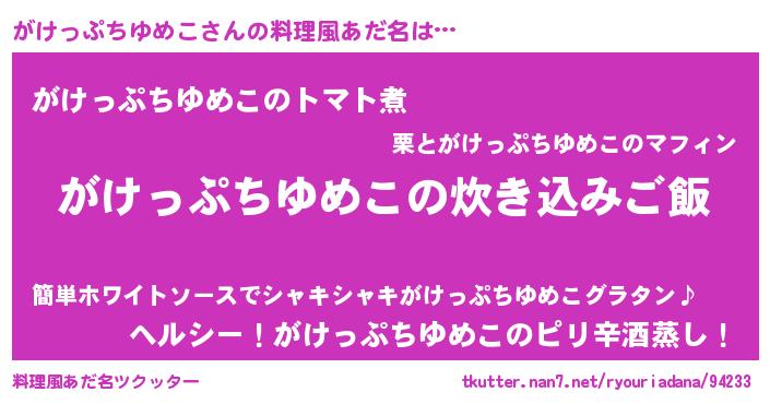 | 男性向けラノベタイトル風あだ名 | 『うちのがけっぷちゆめこが世界を掌握している!』 |