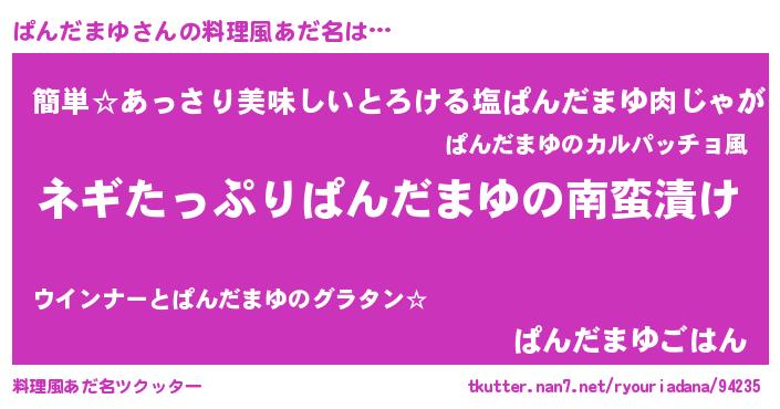 | 意味不明あだ名 | 『ペロリンぱんだまゆ』 |