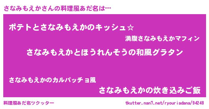 | ヘコむあだ名 | 『さなっ子』『さなみもえか(震え声)』 |