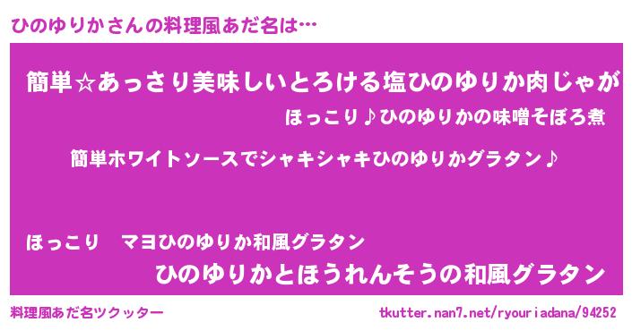 | ヘコむあだ名 | 『ひのを』『ひのゆりか(笑)』 |
