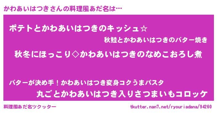 | ヘコむあだ名 | 『かわぷりん』『かわあいはつき(小並感)』 |