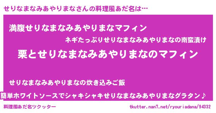 | ヒーロー風カッコイイあだ名 | 『ネオセリナマナミアヤリマナ』 |