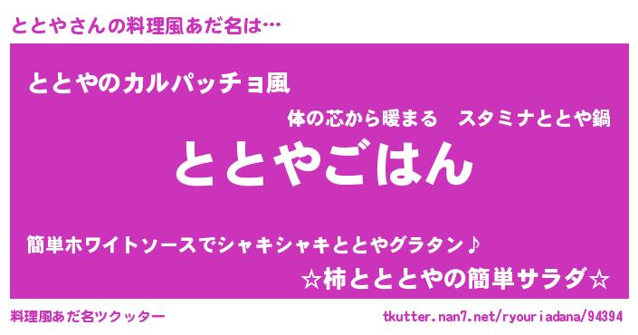 | ヘコむあだ名 | 『豆乳』『ととっぺ』『ととや(笑)』 |