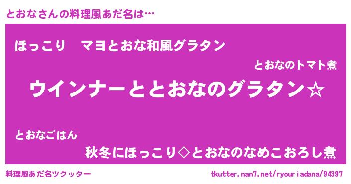 | 意味不明あだ名 | 『とおなフォーエバー』『ペロリンとおな』 |