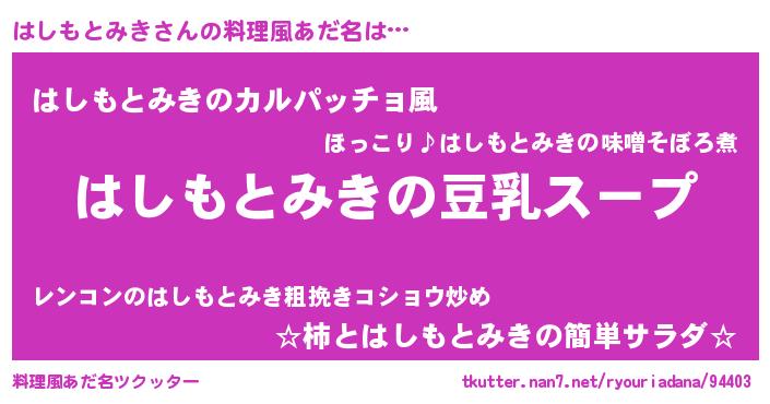 | ポケモン風あだ名 | 『ヒハシモトミキ』『ハーシイ』 |