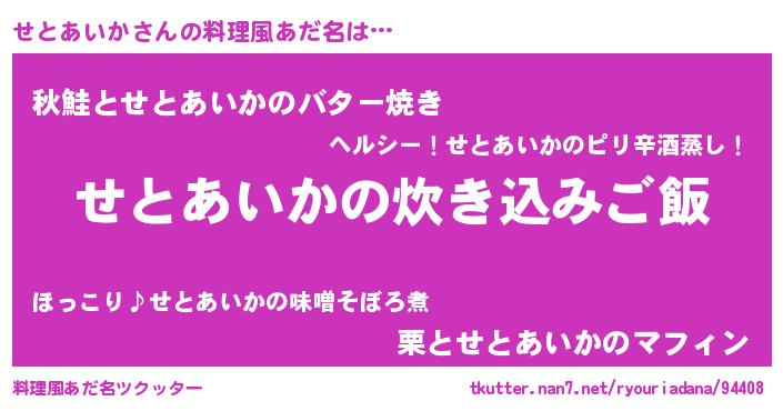 | 意味不明あだ名 | 『永久保存せとあいか』『自称せとあいか』 |