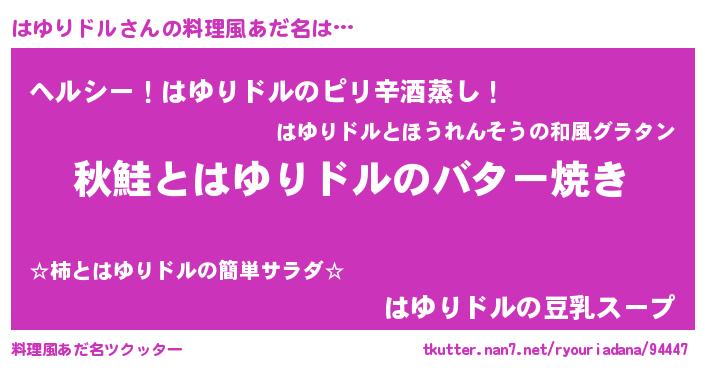 | ヒーロー風カッコイイあだ名 | 『ネオハユリドル』『最強戦士ハユリドル』 |