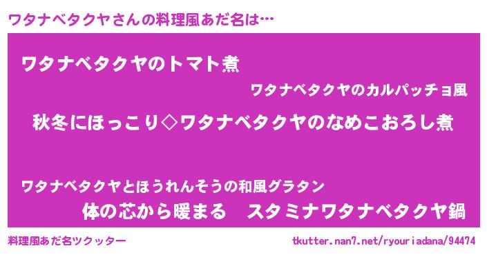 | 男性向けラノベタイトル風あだ名 | 『ワタナベタクヤに滅ぼされるだけの簡単なお仕事です』 |