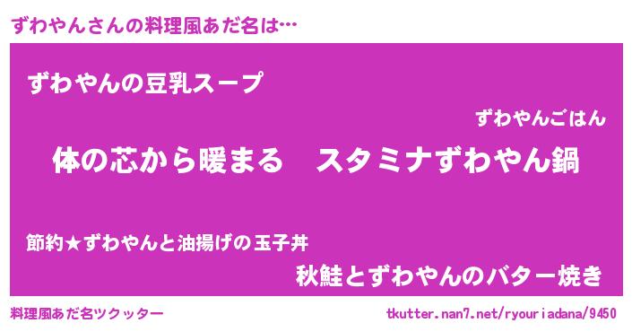 | ヒーロー風カッコイイあだ名 | 『ウルトラずわやんマン』『黄金騎士ズワ』 |