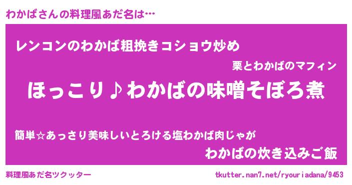 | ファンタジー風あだ名 | 『ワカフェル』『ゼワカトゥ』 |