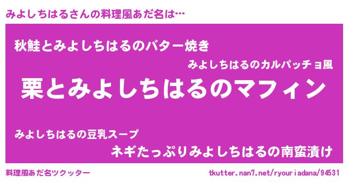 | ヘコむあだ名 | 『みよしちはる(笑)』『みよもー』 |