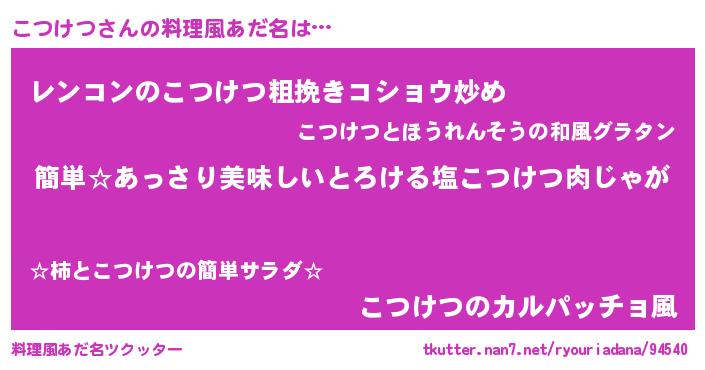 | ファンタジー風あだ名 | 『コツディッシュ』『ゼコツトゥ』 |