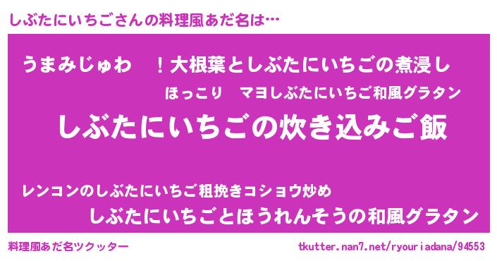 | 男性向けラノベタイトル風あだ名 | 『うちのしぶたにいちごが世界を掌握している!』 |
