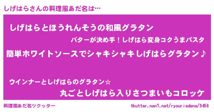 | 男性向けラノベタイトル風あだ名 | 『しげはらの嫁は女の子じゃないと思った?』 |