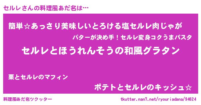| 女子向けラノベタイトル風あだ名 | 『セルレの玉の輿計画!』『セルレ恋絵巻』 |