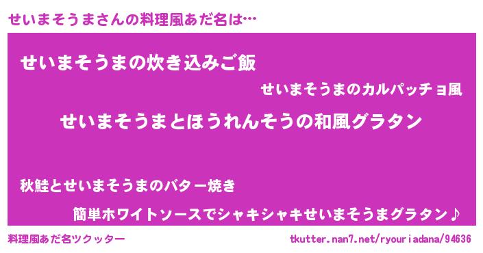| 男性向けラノベタイトル風あだ名 | 『転生したらせいまそうまだった件』 |