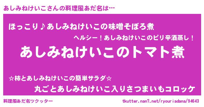 | ヘコむあだ名 | 『あしもー』『あしみねけいこ(苦笑)』 |