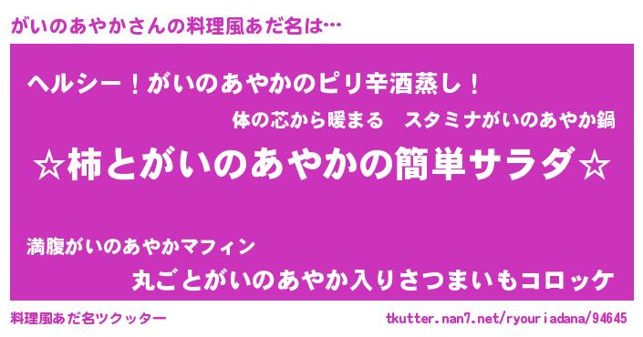 | 欧米人風あだ名 | 『がいのあやか・ステッグマイヤー』 |
