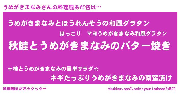 | 意味不明あだ名 | 『永久保存うめがきまなみ』 |