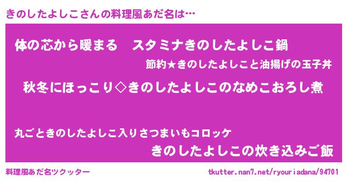 | ファンタジー風あだ名 | 『エターナルキノシタヨシコー』 |