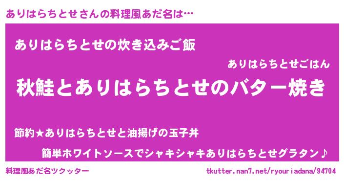 | ヘコむあだ名 | 『ありはらちとせ(遠い目)』『ありを』 |