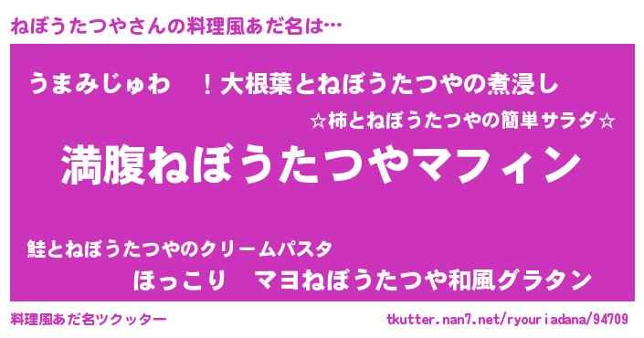 | 胡散臭い通販商品みたいなあだ名 | 『絶対に幸福をもたらす健康食品…その名も「ねぼうたつや」』 |